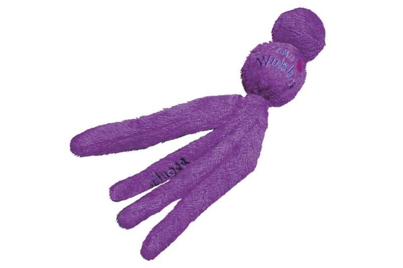 Ein interaktives Wurfspielzeug: Der typischem KONG Hugga aus feinerem Plüschmaterial - Glöckchen, Katzenminze und lange knisternde Fangarme animieren zum Spielen.